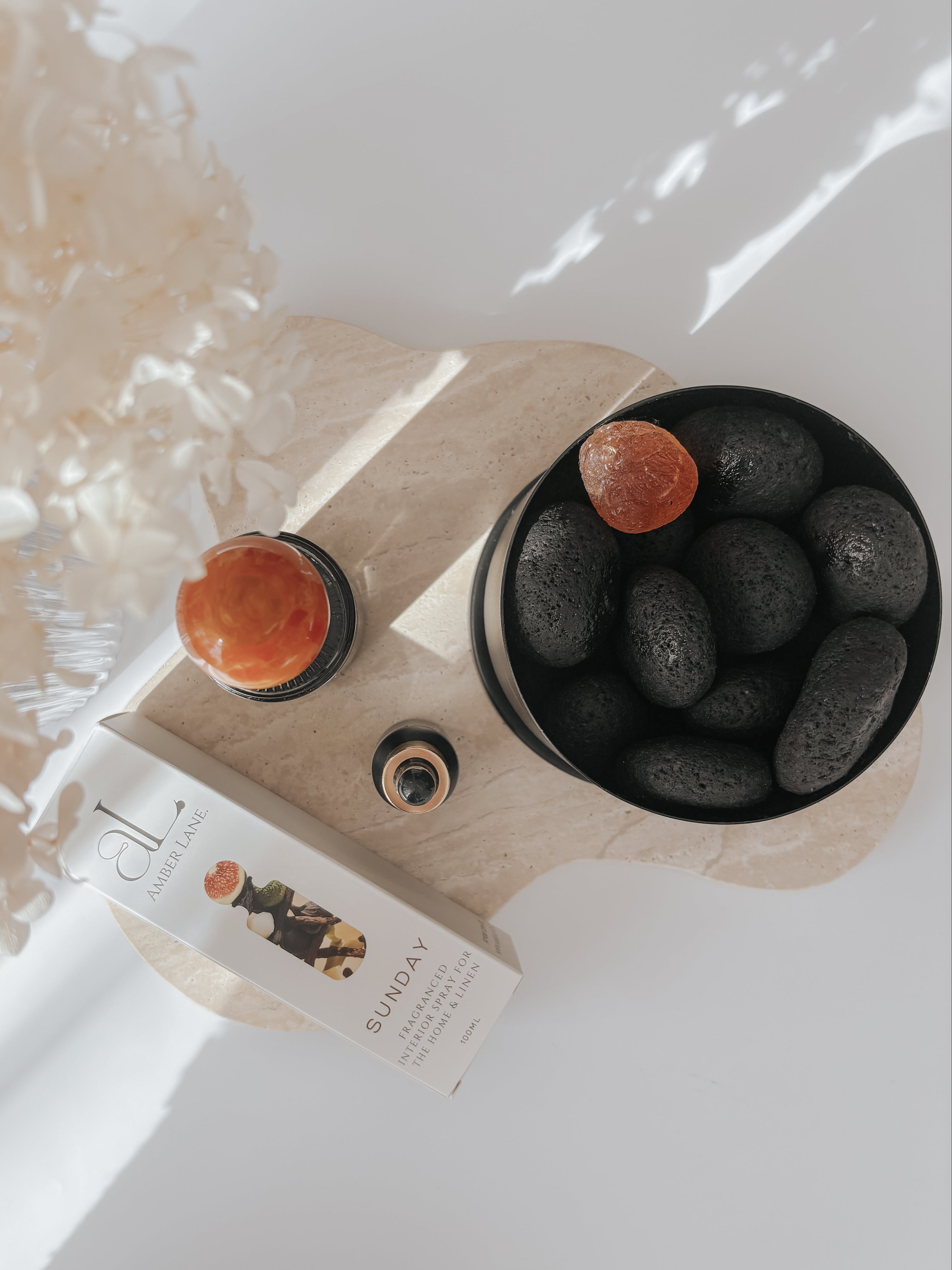 Amber Lane takes your home fragrance experience to new heights, defying the ordinary with a raw sophistication. We believe that fragrance is an art form; it's not just about the aroma; it's also about style. We were inspired to create a product that is more sustainable, and reusable, as well as having sleek and modern aesthetics, providing an alternative to the traditional home fragrance options. We also carefully selected ingredients and suppliers to ensure no parabens or harmful phthalates are used, as well as being vegan and cruelty free. We support craftmanship, with hand crafted vessels, hand blended fragrances and bottles hand filled by us at our small atelier in Auckland, New Zealand. Step into a world where fragrance meets artistry, and where the ordinary is left behind. Welcome home to Amber Lane.